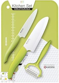 京セラ 包丁 ピーラー まな板 ファイン セラミック 三徳 フルーツ 14cm 11cm キッチンセット 無料研ぎ直し券 付き グリーン Kyocera GP-402GR-C