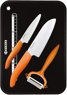 京セラ 包丁 ピーラー まな板 ファイン セラミック 三徳 フルーツ 14cm 11cm キッチンセット 無料研ぎ直し券 付き オレンジ Kyocera GP-402BB OR