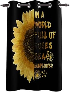 WARM TOUR ウィンドウカーテンパネル ひまわりと引用符 プリント装飾 耐久性のあるドレープ ベッドルーム キッチン リビングルーム ブラック 52''W×84''H ブラック SUNFLOLYX200316BXCDSLXM06207CLAGWMT