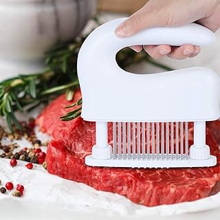 ミートテンダライザー 肉たたき 48刃 ステンレス製 肉筋切り器 キッチン用品 お肉が柔らかくなる調味料が染み込み料理用 (ホワイト)