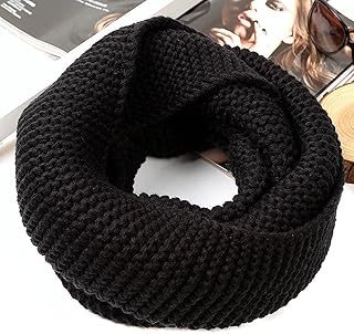 (Black) - Unisex Winter Warm Knitted Thicken Neckerchief Knit Infinity Neck Long Scarf Shawl Soft Warm Scarves for Men and Women (Black)