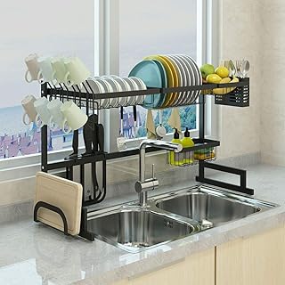 食器乾燥ラック シンク上ディスプレイスタンド 水切り ステンレススチール キッチン用品 収納棚 台所用品ホルダー キッチン用品 収納ラック 85cm (ブラック)