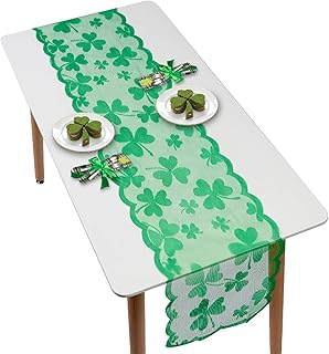 WARM TIME セントパトリックデー テーブルランナー アイリッシュクローバー付き グリーンシャムロッククローバーレーステーブルランナー セントパトリックの日用 春パーティーデコレーション グリーンアイリッシュホリデーパーティー用品 13インチ x 72インチ
