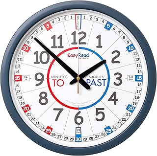 EasyRead Time Teacher Childrens Classroom Wall Clock with simple 3-step time-teaching system, 35 cm dia, ages 5-12, for home & school, learn to tell the time