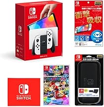 Nintendo Switch(有機ELモデル) Joy-Con(L)/(R) ホワイト+【任天堂ライセンス商品】Nintendo Switch (有機ELモデル)専用有機EL保護フィルム 多機能+Nintendo Switch 専用 スマートポーチEVA ブラック+ マリオカート8 デラックス - Switch (【Amazon.co.jp限定】Nintendo Switch ロゴデザイン マイクロファイバークロス 同梱)