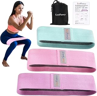 LotFancy ヒップレジスタンスバンド 3本パック ループブーティバンド 女性用 脚とお尻 滑り止めサークル 臀部 ファブリック エクササイズバンド フィットネス トレーニング スクワット用 - グリーン ピンク パープル