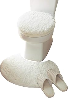 トイレマット・ふたカバー トイレ・便座シート 3点セット 円形 無地 トイレマット セット おしゃれ 可愛い ふわふわ 滑り止め 抗菌 防臭 暖かい洗える 白 ホワイト-