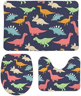 トイレマット 3点セット かわいい カラフル 恐竜柄 トイレ3点セット ジョイントマット カバー ふたカバー トイレマット&フタカバー&便座カバー セット U型足元マット 便器マット トイレファブリック 吸水 滑り止め 洗える 柔らかく トイレ用品 洗浄・暖房用 ホテル用 おしゃれ トイレタリー
