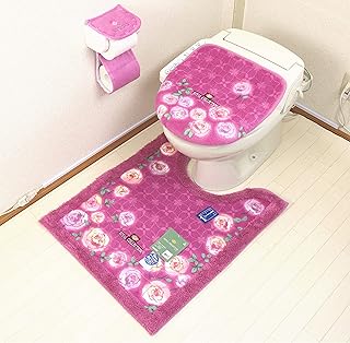 トイレマット 3点セット ロング ピンク ペーパーホルダーカバー おしゃれ 日本製 抗菌 防臭 北欧 バラ 花 (洗浄暖房 普通 共用) オカ チェルシー