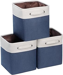 Kntiwiwo ファブリックストレージバスケット 10.5インチ x 10.5インチ x 11インチ キューブビン 大型ストレージビン 折りたたみ式ストレージキューブオーガナイザー 棚用 ブルー 3個セット