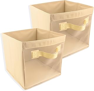 EasyView ハンドル付き収納キューブ | オクスフォードナイロン織100%ビン メッシュシースルーサイド付き | 10.5インチ x 10.5インチ x 10インチ 折りたたみ式