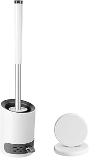 ゴルフトイレブラシ トイレ掃除 掃除ブラシ ケース付き 360°タイプ TPR材質 水はね防止 傷つけない トイレ掃除用品 便器掃除 速乾 通気 省スペース 壁掛け 式自動開閉式防水ベース付き[白]