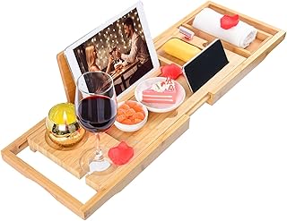 JinDoWin 竹製バスタブトレイ 拡張可能なバスキャディトレイ タブレット 本 携帯電話 ワインホルダー付き ラグジュアリーでロマンチックなスパ 愛する人へのギフトに