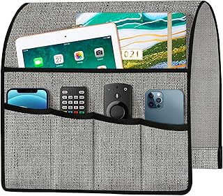 Joywell 厚手リネンソファアームチェアキャディアームレストオーガナイザー リクライニングソファ用リモコンホルダー 雑誌 タブレット 携帯電話 iPad グレー