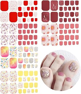 LATTCURE ネイルステッカー 足 6枚入り ネイルシール ギフト 可愛い 人気 おしゃれな上 足用 貼るだけでジェルネイルが完成 ネイルファイル付き(足-ステッカーB)