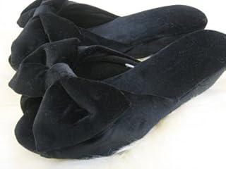 ベルベットリボン ヒールスリッパ ブラック/レディースLサイズ
