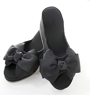 ヒールスリッパ レディース 室内 軽量 静音 おしゃれ 4cm 美脚 STYLE サテン リボン ブラック (学校 参観日 受験 プロ用 サロン エステ などに)
