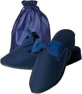 [ハッピークローバー] リボンクリップ付き ヒールスリッパ【紺】 m-001-ribbon