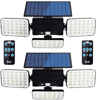 highydroLED ソーラーライト 屋外用 モーションセンサー付き 調節可能 3ヘッド ソーラーパワー ライト 90 LED フラッドライト IP65 防水 セキュリティライト リモコン付き ガレージ 庭 テラス用 2個パック