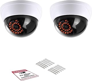 模造監視カメラ ダミーセキュリティカメラ 偽カメラ CCTV監視システム リアルな模造LED付き 自宅セキュリティ警告ステッカー 屋外/屋内使用 (2個パック)