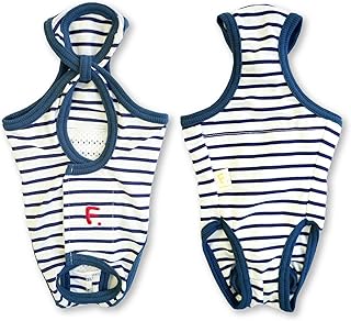 犬猫の服 full of vigor ハートアップリケパイルボーダーお部屋着 ダックス用 カラー 7 ブルー サイズ D2Sつなぎ オールインワン フルオブビガー