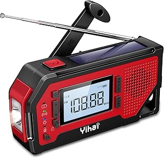 【緊急対策 ソーラーラジオ】 防災ラジオ 充電 手回し 多機能 2000mAh 大容量 懐中電灯 AM/FM携帯ラジオ 栓抜き 乾電池 ラジオライト SOSアラート付き USB充電 スマホ充電対応可能 IPX3防水 停電 地震 震災 津波 台風 アウトドア 日本語取扱説明書付き 敬老の日 父の日ギフト 一年保証 YIHAI (レッド)