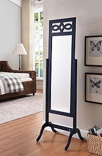 Kings Brand Furniture Verne ネイビーブルー仕上げ 木製自立式フロアミラー
