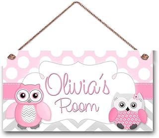名前入りドアサイン フクロウ ピンク グレー フクロウ シェブロン ジグザグ ガールズ 寝室 ベビー 保育園 キッズ 寝室 ウォールアート