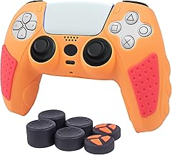 Cybcamo PS5コントローラーグリップ ノンスリップ快適シリコンスキンカバープロテクターケース Playstation 5 DualSense コントローラー用 ジョイスティックキャップ6個付き (デュアルカラー-オレンジ)