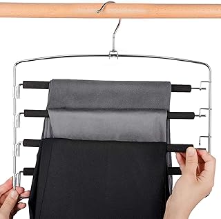 ズボンハンガー ズボン収納ハンガー スラックスハンガー ハンガー マフラーハンガー スカートハンガー 滑り止め ステンレス鋼 マルチハンガー 皺防止 クロゼット収納 省スペース 4段 (1本セット)