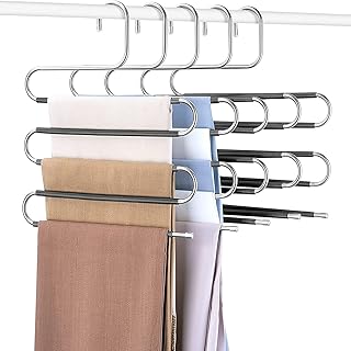 DOIOWN スラックスハンガー ズボンハンガー ズボン掛け 2本組 ハンガー S字型 ステンレス 省スペース すべらない クローゼット 収納 5連 ネクタイ タオル ハンガー